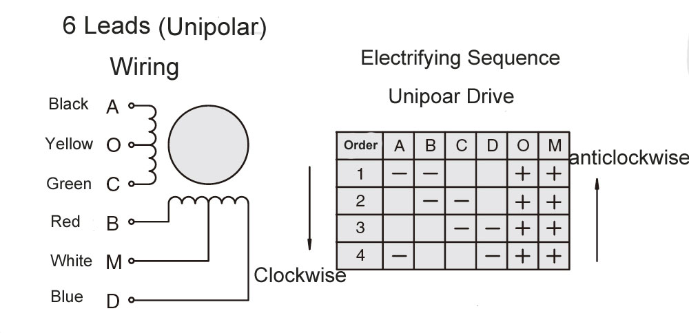 Napęd unipolarny: różne uzwojenia silnika są wzbudzane sekwencyjnie według określonego schematu, ale kierunek prądu każdego uzwojenia jest zawsze taki sam, co nazywa się napędem unipolarnym.