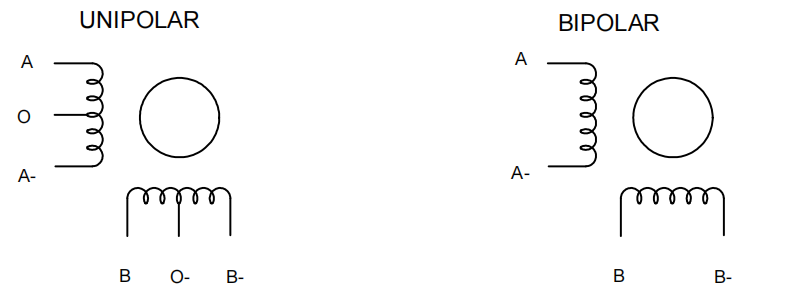 Jednobiegunowy silnik krokowy potrzebuje tylko dwóch elektrod do kontrolowania obrotu wirnika, a silnik obraca się poprzez zmianę kierunku prądu. Dlatego w porównaniu z bipolarnymi silnikami krokowymi, unipolarne silniki krokowe potrzebują tylko 2 elektrod, aby osiągnąć tę samą kontrolę ruchu. Ponieważ jednak unipolarne silniki krokowe wymagają dodania jednobiegunowego sterownika w obwodzie sterującym, złożoność obwodu jest nieco większa.