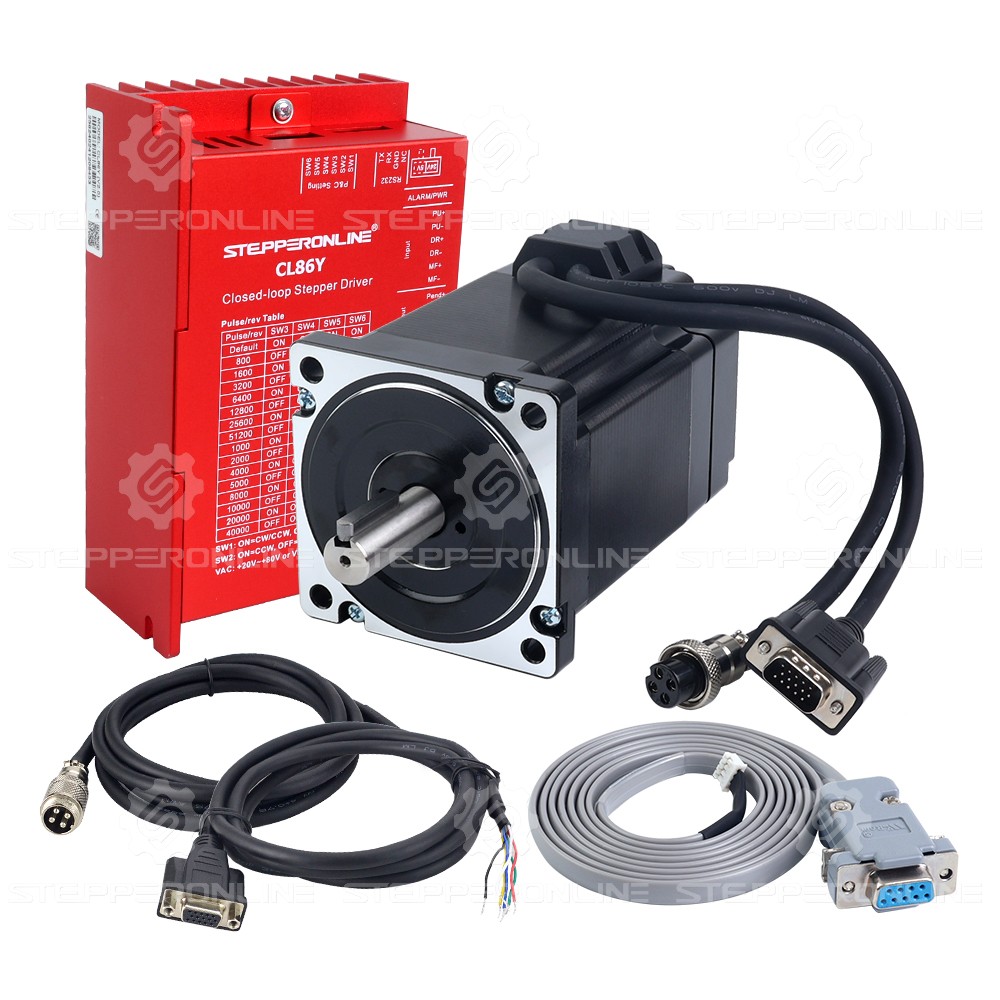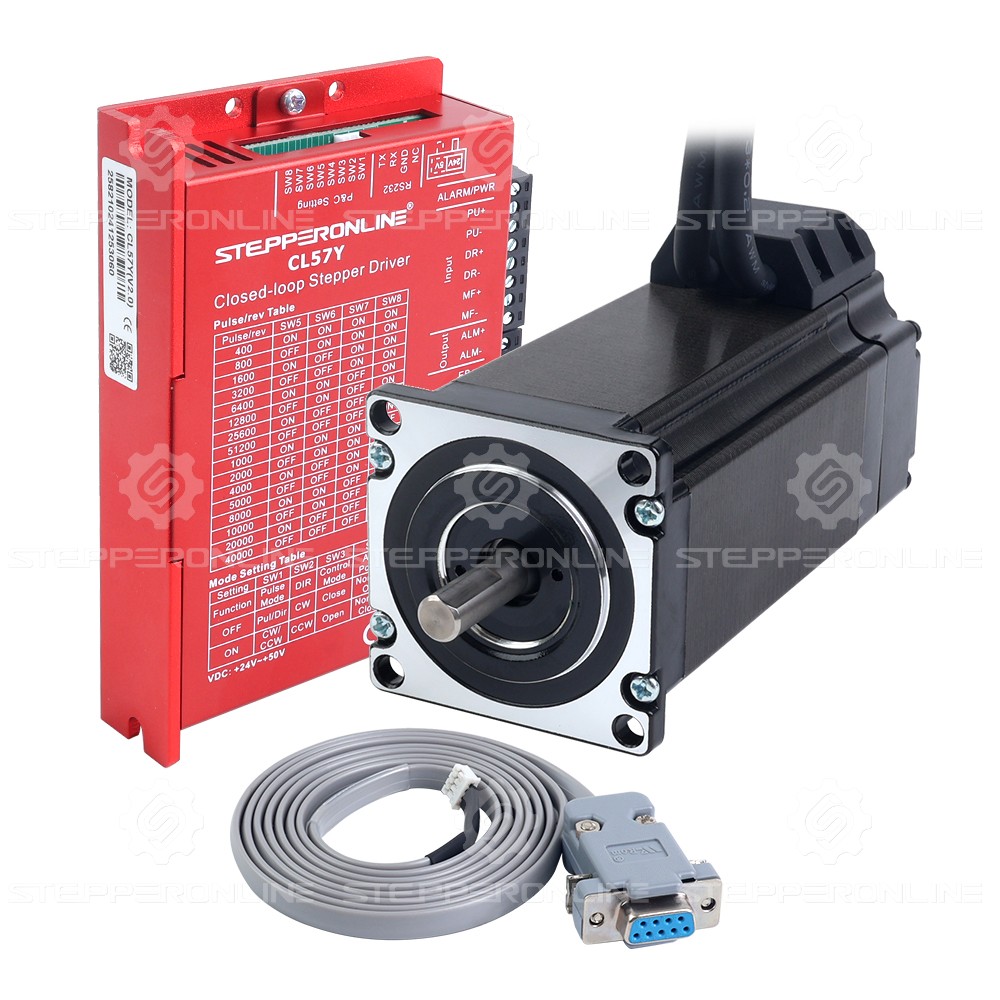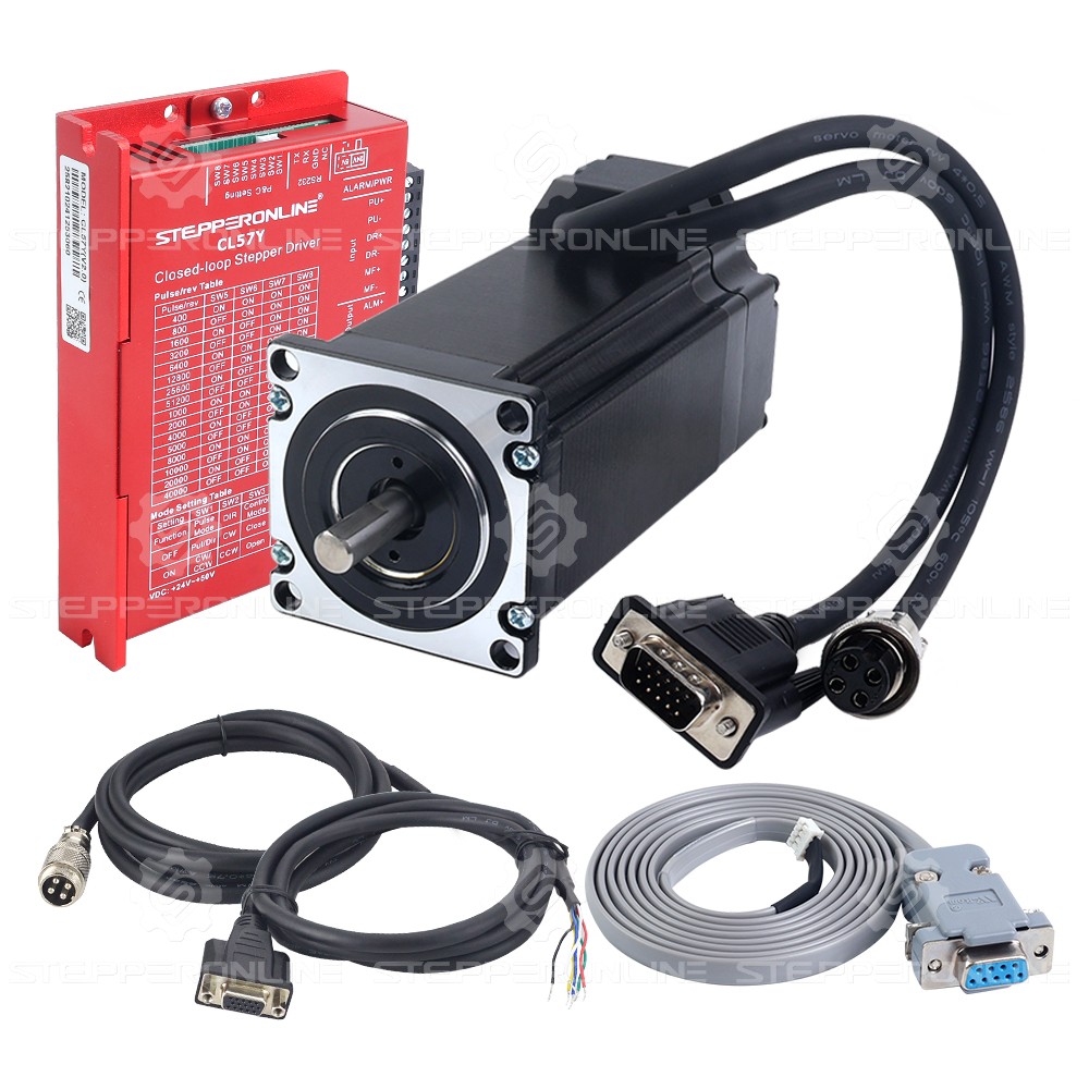 Ten zestaw CNC zawiera:1 x 23HS30-5004D-E1000: Silnik krokowy zamkniętej pętli Nema 23 2,00Nm(283,22oz.in) Enkoder 1000PPR(4000CPR)1 x CL57Y-V20: Sterownik Silnika Krokowego z Zamkniętą Pętlą Seria Y V2.0 0-7,0A 24-50VDC do Silników Krokowych Nema 17, 23, 241 x CE2-M2-20: Kabel przedłużający silnika..