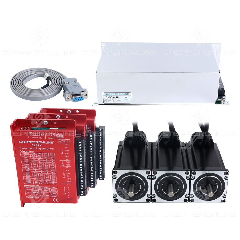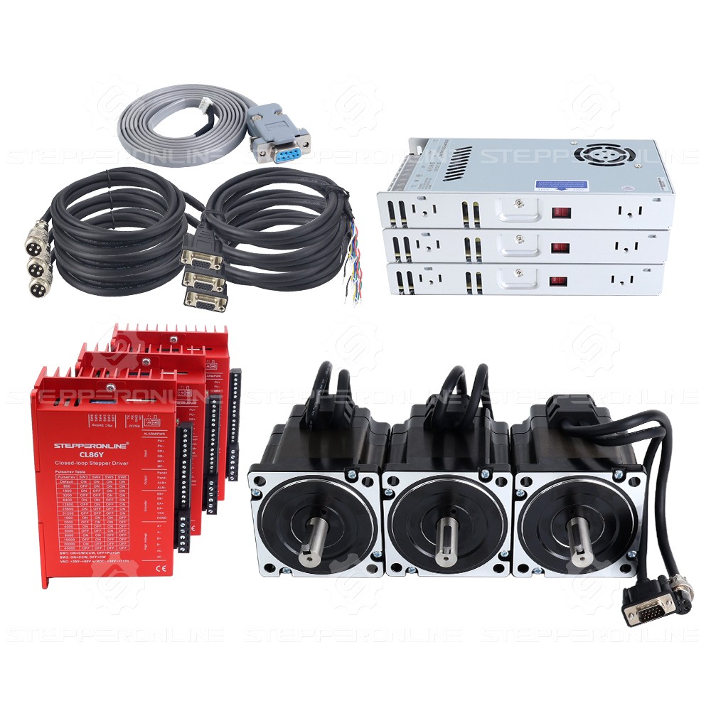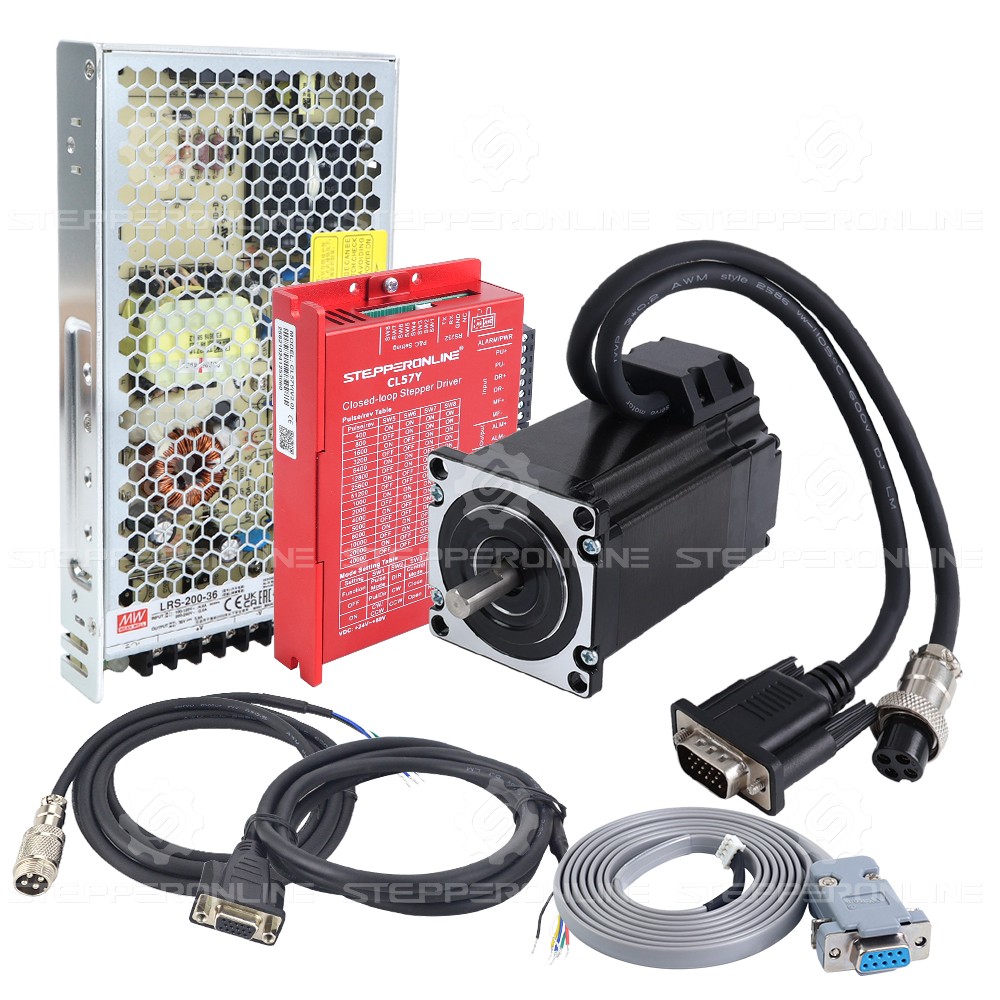 Ten zestaw CNC zawiera:1 x 23HS30-5004D-E1000: Silnik krokowy Nema 23 z zamkniętą pętlą 2,00Nm(283,22oz.in) Enkoder 1000PPR(4000CPR)1 x CL57Y-V20: Sterownik Silnika Krokowego z Zamkniętą Pętlą Seria Y V2.0 0-7,0A 24-50VDC do Silników Krokowych Nema 17, 23, 241 x LRS-200-36: Zasilacz impulsowy MEAN W..